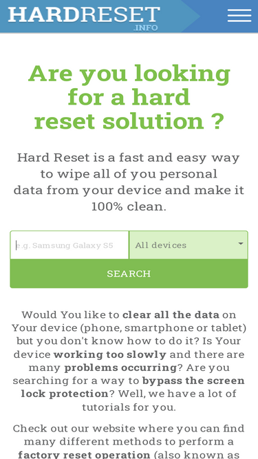 100%are you looking for a factory reset solution ? hardreset.info is bigest tutorial database. we have more then 30 000 solutions for every device brands.