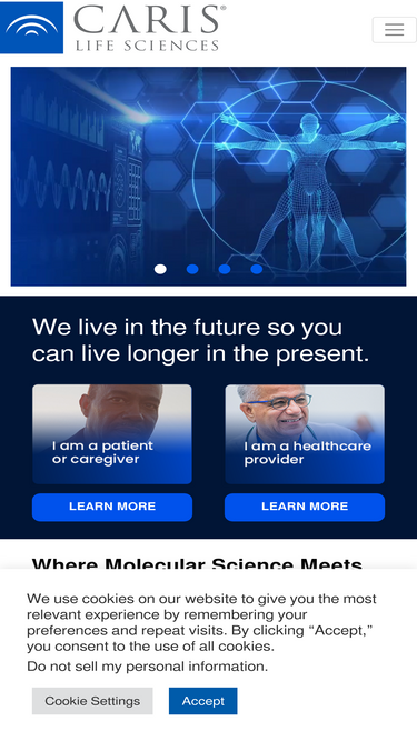 100%Caris fulfills the promise of precision oncology through advanced laboratory testing, including tumor profiling and blood-based cancer diagnostics.