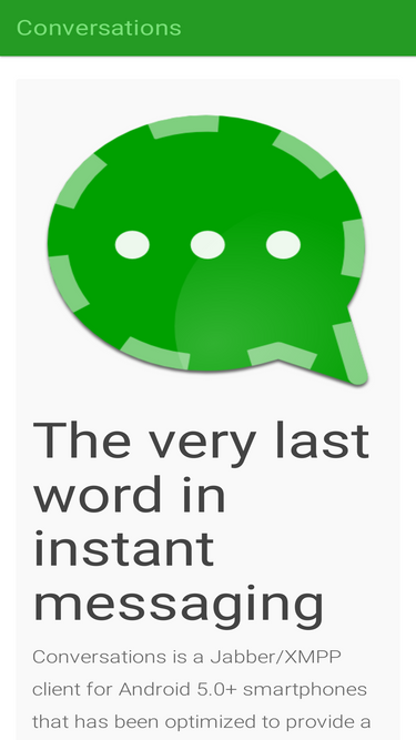 89%An open source instant messaging client. Easy to use, reliable, battery friendly. With built-in support for e2e encryption, group chats and media transfer.