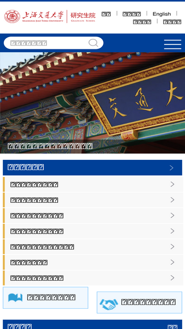 91%欢迎访问上海交通大学研究生院,网站主要内容:研究生招生、培养、学位、国际化以及日常工作通知公告;研究生教育新闻动态;研究生培养、学籍管理操作、学位信息申请;研究生教育相关规章制度公式、信息公开;研究生教育成果展示。