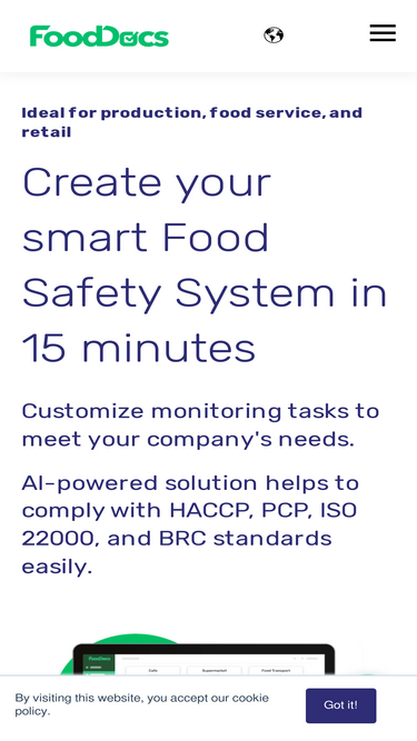 80%Get in touch with the FoodDocs team to work together toward your business’s food safety and build up your smart food safety system.