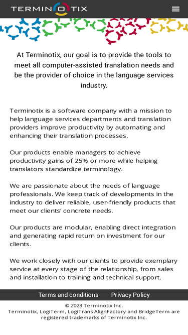 54%Nos services Chez Terminotix, nous faisons plus que de vendre des logiciels. Nous offrons à nos clients une multitude de services pour les aider dans différentes situations. Validation & Conversion À partir de vos archives bilingues, nous pouvons créer pour vous des bitextes afin d’enrichir votre mémoire de traduction. Conversion de lexiques La migration de […]