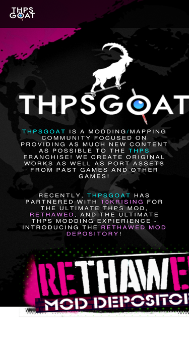 100%Welcome to the reTHAWed Mod Depository! Share custom content with users from around the world! Skaters, maps, and more!