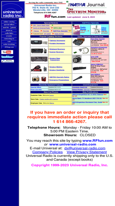 85%universal radio inc. selling new and used amateur and shortwave radio equipment since 1942