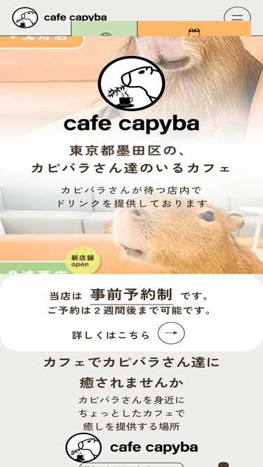 58%cafe capyba operates two capybara cafés. —Hikifune near Skytree and Asakusa. Meet friendly capybaras and book up to two weeks in advance. Ages 6+ (under 12 with guardian). [capybara cafe in tokyo, JAPAN]