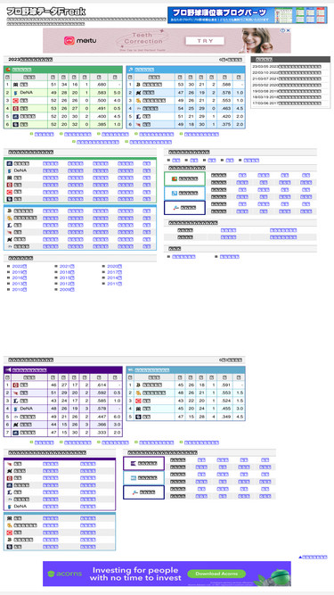 100%他では見られないプロ野球の詳しいデータを掲載。チーム成績、選手成績。