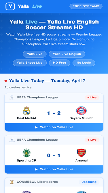 93%Yalla Live is the #1 free live sports streaming platform. Watch Yalla Live English football, soccer, Premier League, Champions League, La Liga, boxing, F1,...