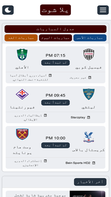 موقع يلا شوت لمشاهدة أهم المباريات اليوم بث مباشر جوال يلاشوت بلس حصري الجديد بدون تقطيع yallashoot جدول مباريات اليوم عبر موقع يلا شوت لايف yalla shoot live
