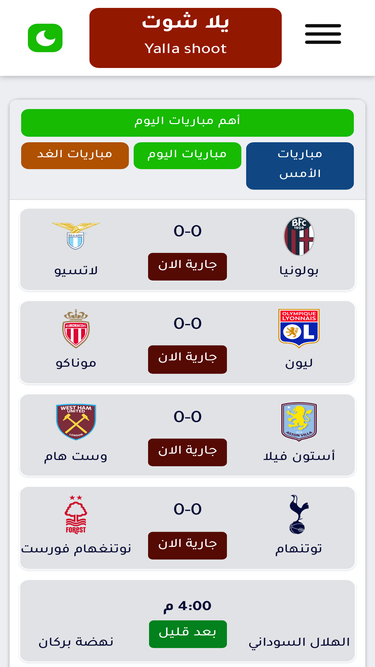 Yalla Shoot,يلا شوت,yallashoot,يلاشوت,بث مباشر مشاهدة مباريات اليوم بدون تقطيع جوال جدول المباريات المباشرة عبر موقع يلا شوت الجديد لايف