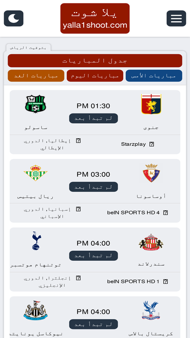 يلا شوت yalla shoot مشاهدة مباريات اليوم بث مباشر على موقع يلاشوت بدون تقطيع yalla shoot live اهم مباريات اليوم شوت كورة shoot yalla - yalla shoot tv.
