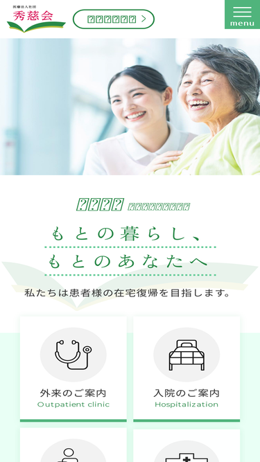 94%医療法人社団秀慈会は静岡市内に2つの病院、5つの介護・福祉施設を開設。医療と介護・福祉それぞれの施設を持つことで患者様・利用者様に合った最適なケアを提供します。各施設やサービスのご案内はこちらから。