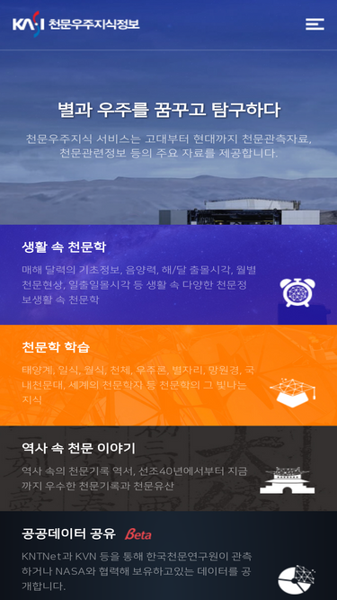 92%천문학전공 공개행사 서울대학교 천문학전공에서는 일반인들이 천문학을 접할 수 있는 기회를 제공 합니다. 소개 서울대학교 천문학전공에서는 일반일들이 천문학을 접할 수 있는 기회를 제공하기 위하여 1983년부터 2007년까지 일 년에 한 차례씩 천문대 공개행사를 가져 왔습니다. 이 행사를 보다 발전시키기 위하여 1998년부터 매달 한 번씩 행사를 개최해 오다가 현재는 일 년에 약 6회 개최하고 있습니다. 이 행사를 통하여 […]