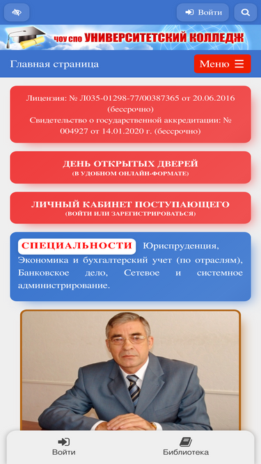 100%главная станица официального сайта колледжа.