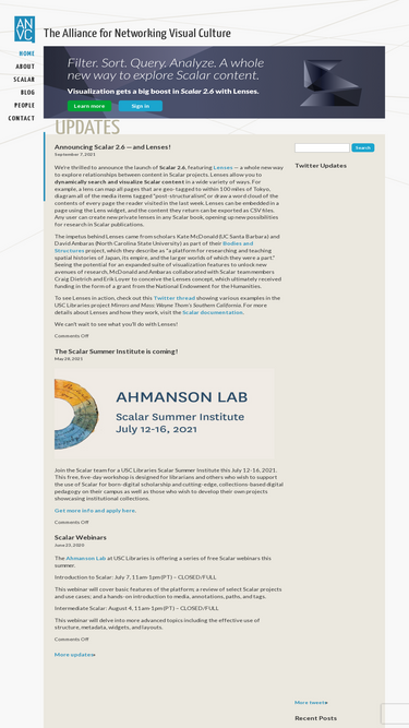 85%website of the alliance for networking visual culture, featuring information about the online publishing platform scalar.