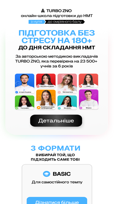 96%Професійні викладачі, ІТ-рішення для підготовки до ЗНО №1 та власні навчальні матеріали забезпечують підготовку на 190+