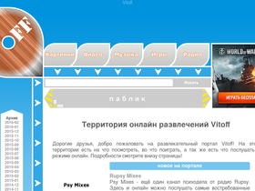 100%на территории vitoff есть на что посмотреть, во что поиграть, а так же есть что послушать в режиме онлайн. потому что vitoff - это развлекательный портал онлайн игр и музыки, а также тематических галерей картинок, интересного видео и радиостанций со всего