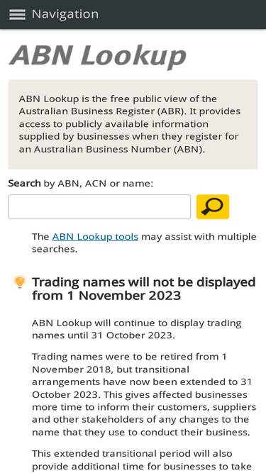 82%provides access to the publicly available information provided by businesses when they register for an australian business number (abn).