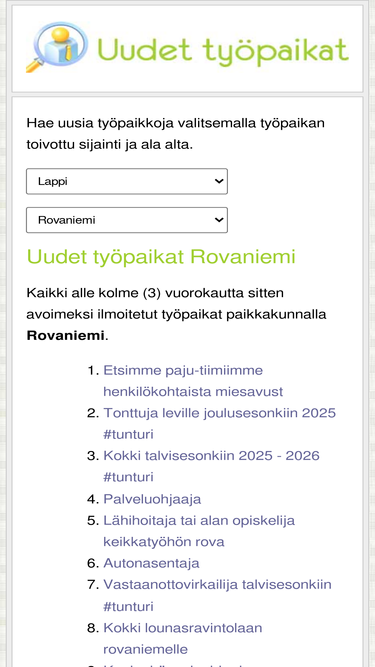 uudet avoimet työpaikat kunnassa rovaniemi, lappi. katso myös muut avoimet työpaikat tämän kunnan läheltä.
