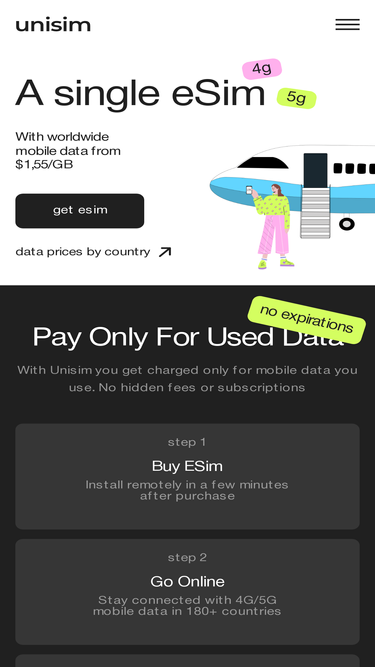 100%Pay-as-you-go international eSIM with cheap mobile internet. Get travel eSIM for 170+ countries for free in a few minutes. Forget about roaming charges.