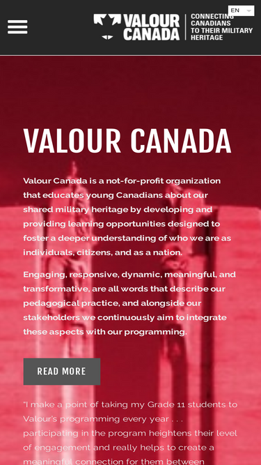 77%We are charitable non-profit organization that focuses on educating young Canadians nationwide about our country's military history and heritage.