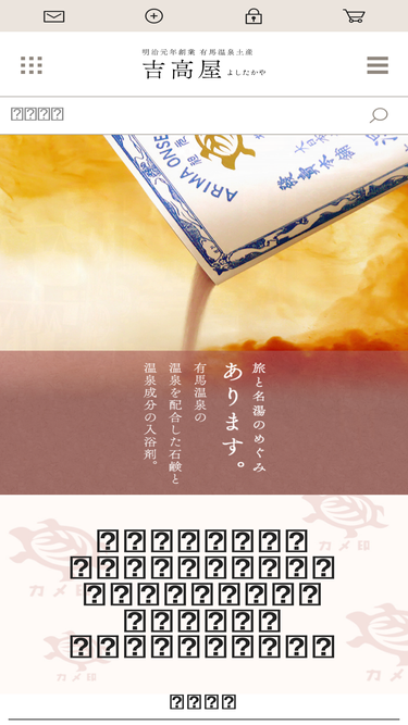 62%兵庫県神戸市の有馬町にある土産物店「吉高屋」です。当店は明治元年の創業から今日にいたるまで、「良質」にこだわった商品をご提供してまいりました。「カメ印」の自宅湯原料やスキンケア用品など、当店自慢の商品を是非一度お試しください。