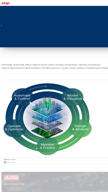 76%ETAP provides market-leading software solutions for electrical systems, from design and engineering to operations and maintenance. Through its integrated electrical digital twin platform, ETAP delivers best-in-class, seamless customer experience and cloud-leveraging technologies ensuring universal accessibility for designers, engineers, and operators empowering users to increase productivity, collaboration, and efficiency, and enabling their energy transition journey.