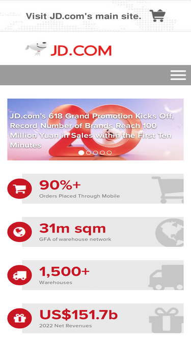 61%jd.com is the largest retailer in china, a member of the nasdaq100 and a fortune global 500 company.
