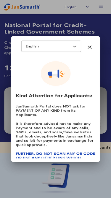 96%JanSamarth - A unique One-stop digital portal linking Government Schemes. ✓ Check Eligibility ✓ Apply Online ✓ Get Digital Approval from the Lenders