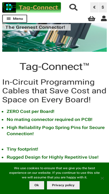 82%10-Pin Legged Plug-of-Nails™ small PCB footprint debug connector to 10-pin IDC for MCU debug/programming. Zero cost per board. Buy online.
