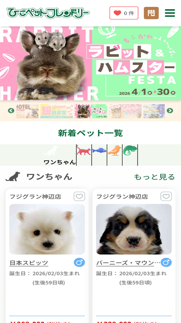 95%犬、猫、小動物、鳥、魚、昆虫、爬虫類まで様々なペット、関連商品を取り扱うペットショップです。