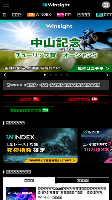 94%Winsightは競馬フリークがつくり上げた競馬ファンのための新・競馬メディアです。本当に使いたい機能にフォーカスした次世代の馬柱から、未来の競馬ライフを提示します。エキスパートによる予想コラム、レース情報、ニュース、過去傾向分析やデータベース、AIパドック解析と連動したパドック診断などがご利用いただけます。