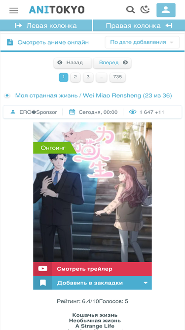 68%Наш аниме-проект включает в себя просмотр аниме онлайн, оригинальные саундтреки из фильмов и сериалов, новости и статьи о новинках в мире аниме!!! Всегда рады видеть Вас. Команда сайта AniTokio.tv