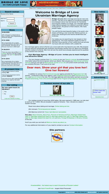 99%we are ukrainian marriage agency that aiming to build a bridge of love between single men and women for friendship, love, creation the family. we are one of the most honest and reliable ukrainian marriage agency.