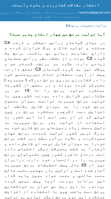 97%انتشار مقالات کشاورزی و علوم وابسته rashtrice@gmail.com از همه به پاس انتشار مقالات اين وبلاگ با معرفي منبع كوشيده اند تشكر مي كنم.