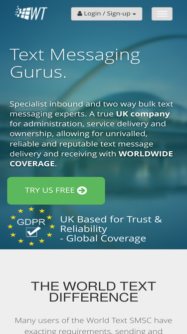 100%world text the bulk sms, inbound and two way sms specialists. sms virtual numbers (aka long numbers), physical sim hosting, short codes, email to sms, http rest api, smpp api