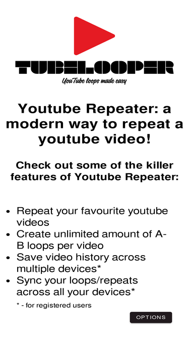 87%Loop YouTube videos in the easiest way. Using YouTube Repeater you can repeat the full video or select a part of it.