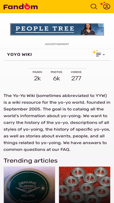 78%This wiki offers 'how to' guides, yo-yo reviews, famous yo-yoer biographies, and anyone can add to it! We currently have 2,276 articles. Become a team contributor today by joining us, and creating the best yo-yo resource on the web! About YYW