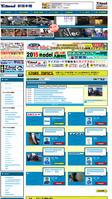 93%株式会社ワイ・インターナショナルは、全国に32店舗を展開する日本最大級のスポーツ自転車専門店「ワイズロード」を運営しています。会社概要、ニュース、採用情報、本社アクセス、取扱ブランドなどを掲載しています。