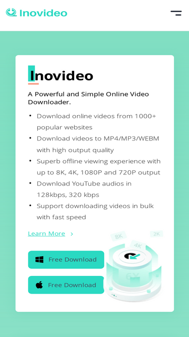 87%Inovideo can help you download online videos from YouTube,Dailymotion,etc 1000+ websites to to popular formats like MP4 or MP3 with incredible quality.