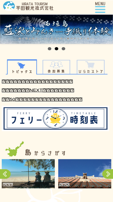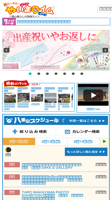 94%石垣島をはじめとする、竹富島、小浜島、黒島、鳩間島、波照間島、新城島、西表島、与那国島のイベント情報やお店情報、観光ガイドなど盛りだくさんの八重山地域ポータルサイト。セール情報や新店舗情報、おくやみ情報など暮らしに役立つ情報も満載。石垣島の市街地を映したライブカメラも常に確認できます。
