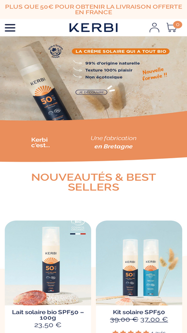 76%Kerbi, le 1er Laboratoire Dermo-Solaire né en Bretagne. Expertise dans les crèmes solaires naturelles, bio et testées cliniquement pour une protection efficace contre les UVA et UVB. Adaptées à toutes les peaux, même sensibles. Protégez votre peau tout en respectant la planète.