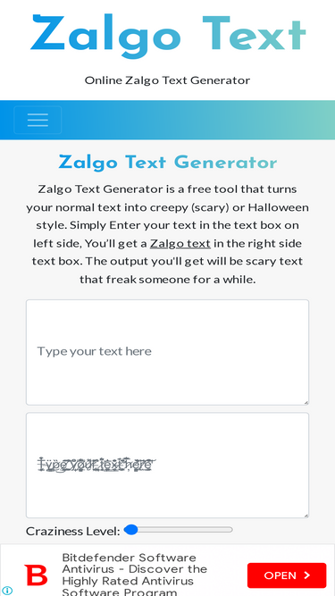 zalgo text generator is a free tool to convert your text into glitch text. however, the zalgo text is a glitchy form of normal text. you can also unzalgo the scary or halloween style text to normal text.