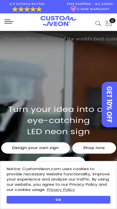 93%Design your own custom neon sign with HappyNeon. Fast delivery, premium quality, and AI-powered customization.
