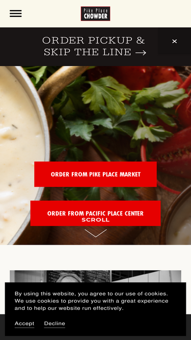 81%Seattle's iconic chowder and seafood destination with two locations at Pike Place Market and Pacific Place. Family-owned, we proudly serve 100% Certified Sustainable seafood. Our local ingredients create award-winning flavors that have earned national acclaim including 17 First Place Awards. Handcra