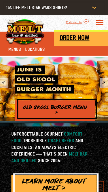 81%viva melt! we are pleased to reintroduce ourselves as melt bar and grilled - the grown-up version. we invite you to step inside and experience our updated atmosphere and thoughtfully curated, chef-driven menu. filled with an exciting mix of fresh flavors, reimagined fan favorites, and sophisticated new offerings. exploring our menu will bring a