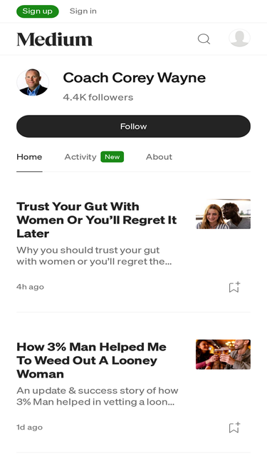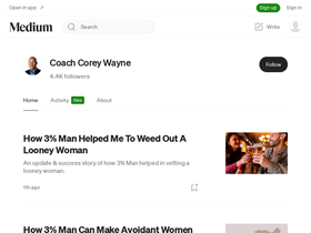 73%Read writing from Coach Corey Wayne on Medium. Life & Peak Performance Coach. I Teach Self-Reliance. Subscribe To My Newsletter To Read My eBooks “3% Man” & “Mastering Yourself” Free: http://bit.ly/CCWeBooks
