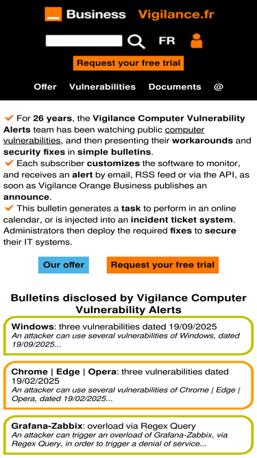 Formulaire de demande d'essai gratuit Vigilance Alertes Vulnérabilités Informatiques.