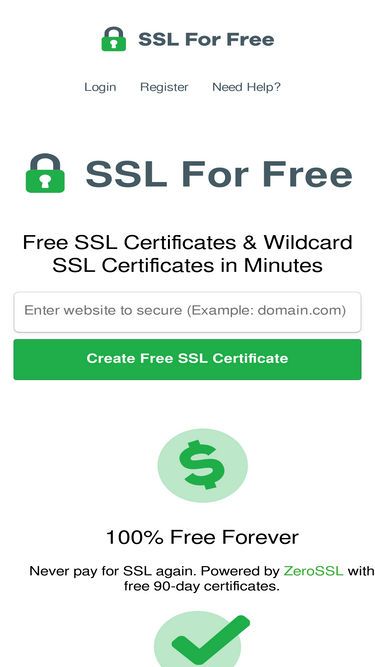 Create your free accountzerossl.com