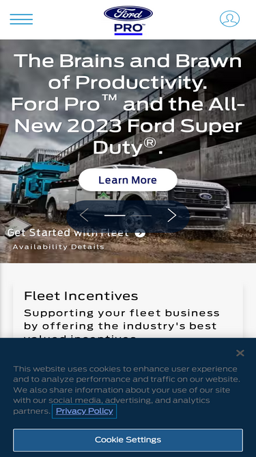 65%manage your fleet with ford pro™ and maximize productivity with vehicle health data, ev charging solutions, vehicle tracking & driver behavior insights.