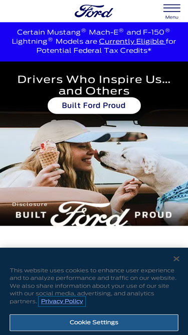 99%Ford® is Built for America. Discover the latest lineup in new Ford vehicles! Explore hybrid & electric vehicle options, see photos, build & price, search inventory, view pricing & incentives & see the latest technology & news happening at Ford.